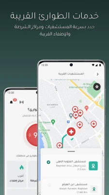- Quick location of nearby hospitals, police stations, and fire departments