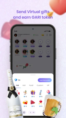 * Go LIVE, receive gifts, earn beans, and redeem them for GARI tokens.