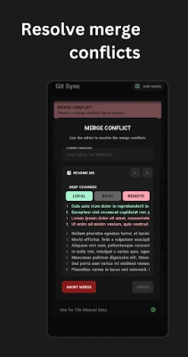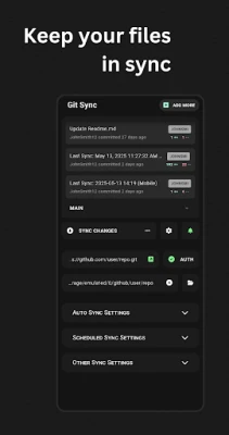 GitSync is an Android git client that aims to simplify the process of syncing a folder between a git remote and a local directory. It works in the background to keep your files synced with a simple one-time setup and numerous options for activating manual syncs