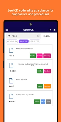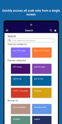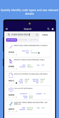 Instantly lookup and find CPT® and ICD10 codes—even with typos or partial terms. Try searching “elbow mass” or “ten fing”—you’ll be surprised how fast and accurate it is.