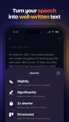 • (soon) Personalize your style. The app will paraphrase your speech into formal, casual, academic, etc.
