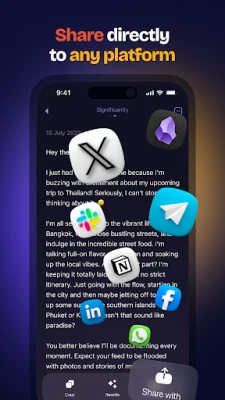 • Share your text easily. Quickly send text via WhatsApp, Telegram, Email, and more.