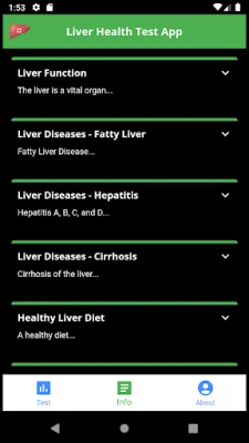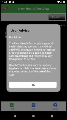 The Liver Health Test App does not require you to supply any personal contact information, does not display ads and it is quick and easy to use. Check your liver’s health today.