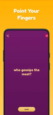 Get a bunch of friends gathered. The app will display one question at the time. Everybody in the group point at the person that they believe fits the description best.