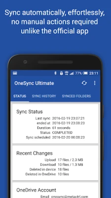 This app is an automatic file sync and backup tool. It lets you automatically synchronize files and folders with Microsoft OneDrive cloud storage and with your other devices. It is an ideal tool for photo sync, document and file backup, automatic file transfer, automatic file sharing between devices,...