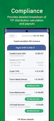 Automated processing of PayDay for daily earnings, TIPS, Time/Attendance and Wage Management Software as a Service, which calculates, allocates and pays out TIPS, Commissions, Service Charges, and manages your hours worked and give employees the power to create a payday the same day they work.