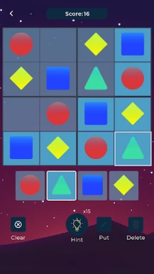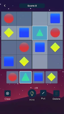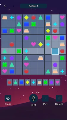 Simply place different shapes into the grid, following Sudoku-style rules! Each row, column, and section must have unique shapes—no duplicates allowed.