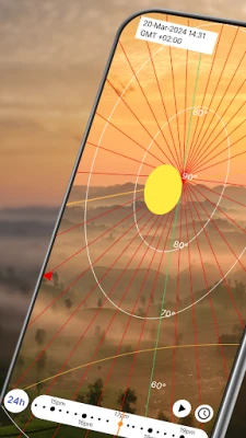 ⭐The Camera View displays the solar position and lunar position directly overlaid on your device's camera. Use the slider to set the time of day and directly track the solar movement. [A device with a magnetometer (compass) is needed to use the AR feature].