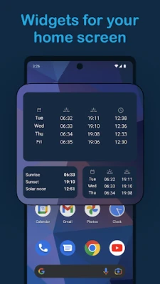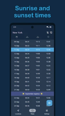 * Stay notified of when the sun rises and sets with daily sunrise and sunset notifications feature
